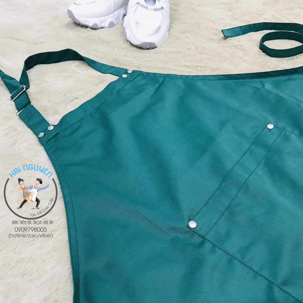 Tạp dề yếm xanh lá đậm đính nút