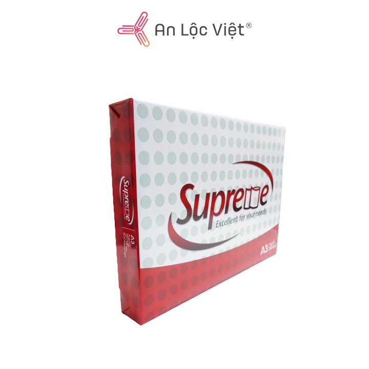 - Đây là loại giấy in photo thuộc nhãn hiệu giấy Supreme, có định lượng 70gsm, khổ giấy A3 phổ biến trên thị trường hiện nay.