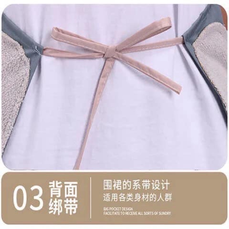 Tạp giề cao cấp + Tạp giề chống thấm + Có chỗ để điện thoại + Chỗ lau tay tiện lợi kích thước 72*68cm*Mô tả sản phẩm: