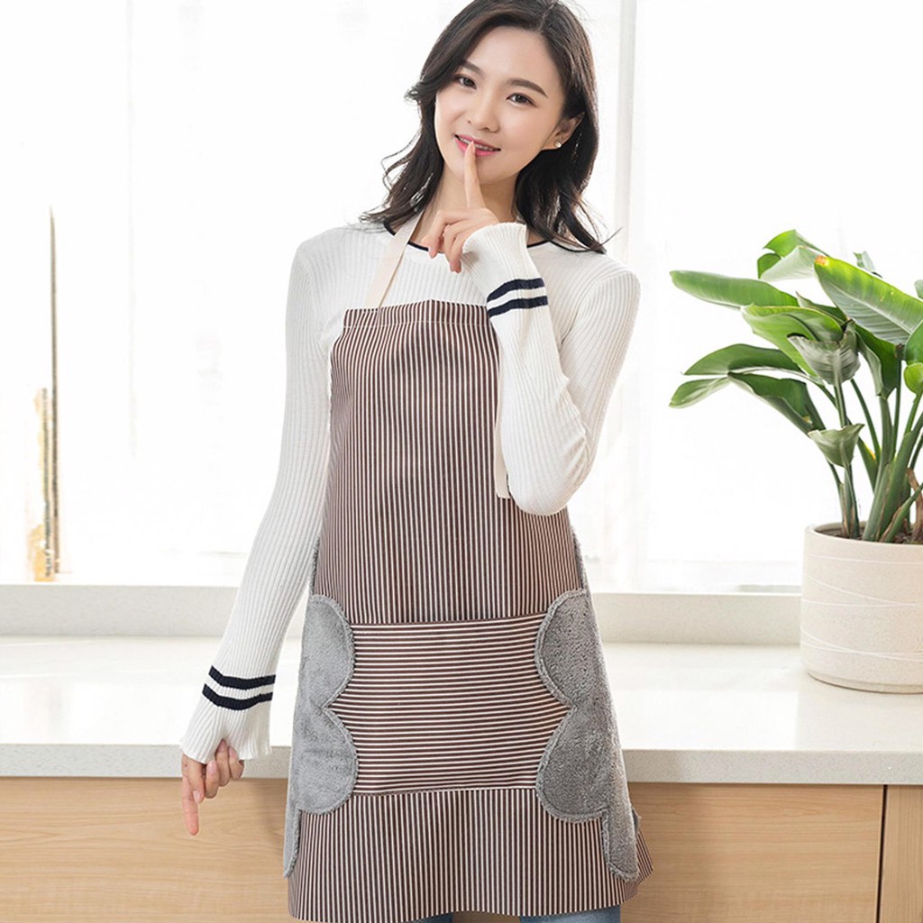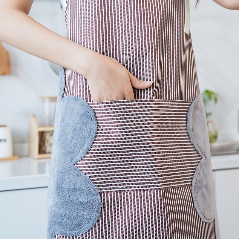 Tạp giề kẻ có chỗ lau tay chống thấm cực kì tốt tạp rề tạp dề- Chất liệu poli không thấm nước.