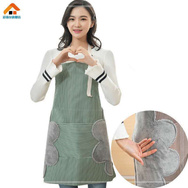 Tạp giề kẻ có chỗ lau tay thấm nước cực kì tiện lợi sạch sẽ- Chất liệu poli không thấm nước.
