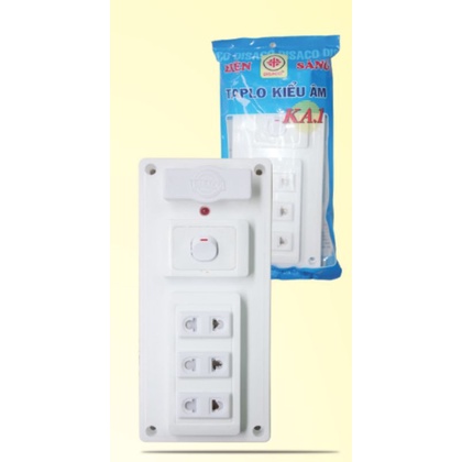 táp lô điện giả âm có 3 ổ cắm và từ 1 đến 3 công tắc trên táp lô có sẳn cầu chì bảo vệtáp lô 1 công tắc 3 ổ cắm