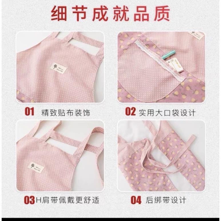 Thiết kế: Tạp dề che phủ phía trước, phía sau có dây buộc gọn gàng, có túi siêu to ở giữa tiện lợi, thời trang