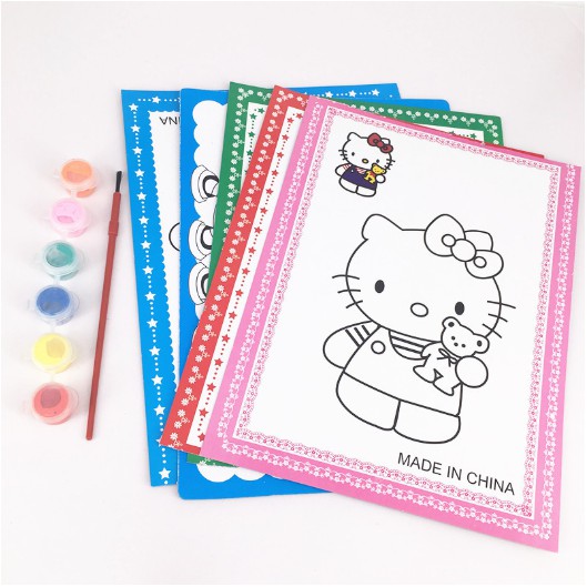 Bao Gồm : năm tờ giấy với các mẫu khác nhau. Sáu hộp sơn. Bàn chải