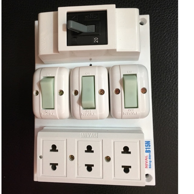 Thiết Bị Điện Gia Dụng > Mạch điện & Phụ tùng > Ổ cắm điện & Dây nối || Taplo bảng điện Nival 3 công tắc Attomat 20A B15NCòn hàng