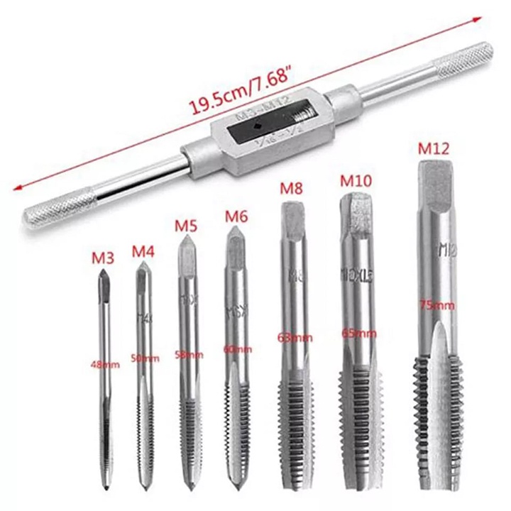 8 mũi taro: M3*0.5 - M4*0.7 - M5*0.8 - M6*1.0 - M7*1.0 - M8*1.25 -
