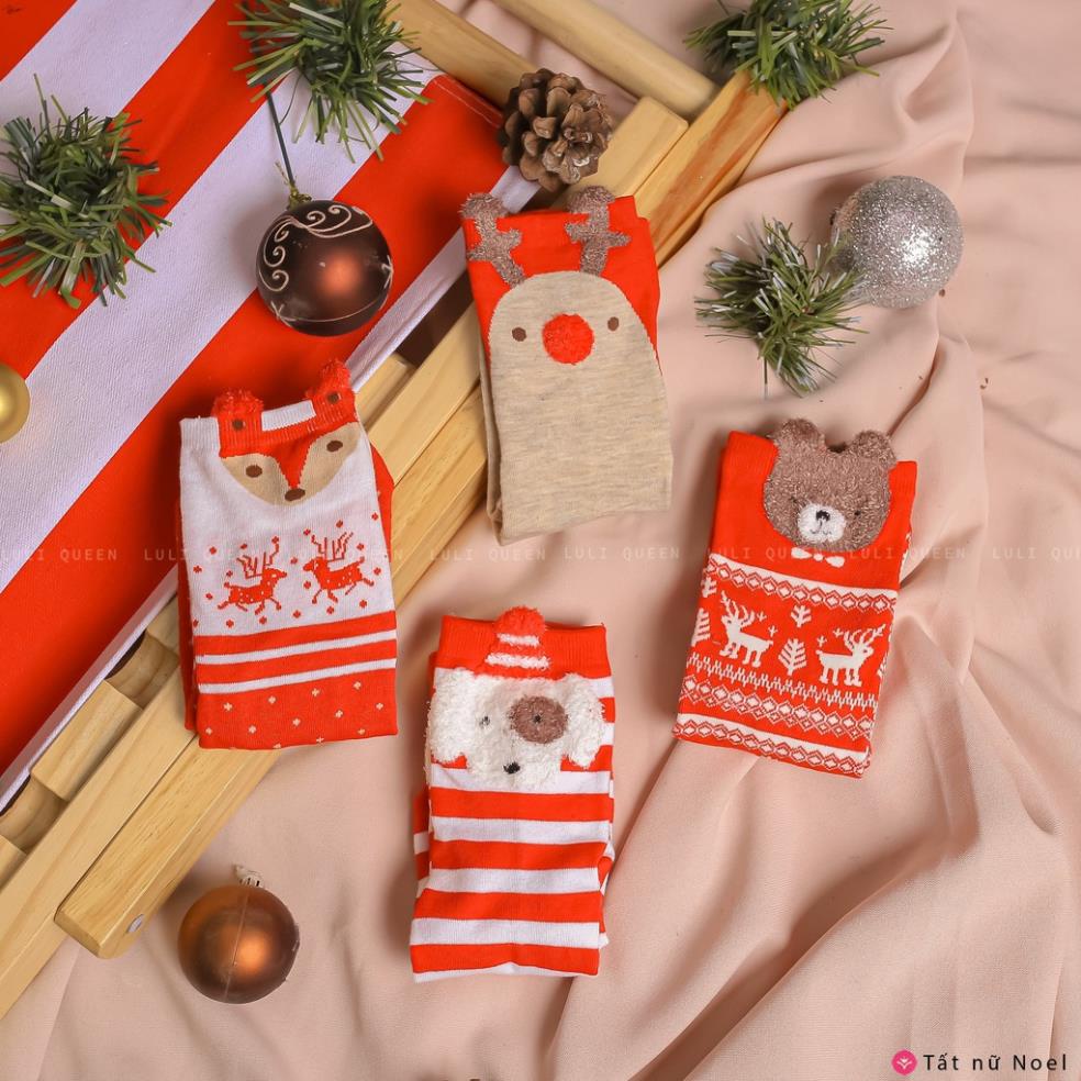 [Mã ELHADEV giảm 4% đơn 300K] Tất Nữ dễ thương Bear họa tiết NOEL vải cotton co dãn bền bỉ, ngăn mùi kháng khuẩn