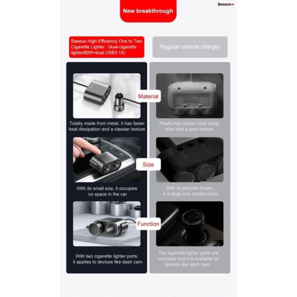 Giới thiệu Tẩu sạc đa năng tích hợp bộ chia cổng sạc Baseus