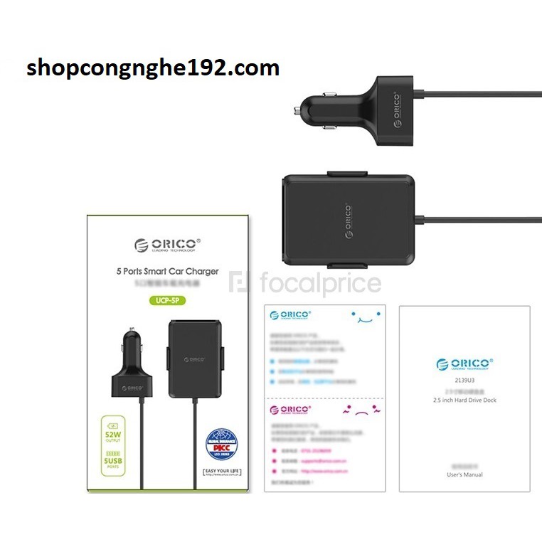 Điện Thoại & Phụ Kiện > Pin, Cáp & Bộ sạc > Cốc sạc || TẨU SẠC OTO 5 CỔNG TÍCH HỢP SẠC NHANH 3.0 ORICO UCP-5P ( 52W) (hàng chính hãng)Còn hàng