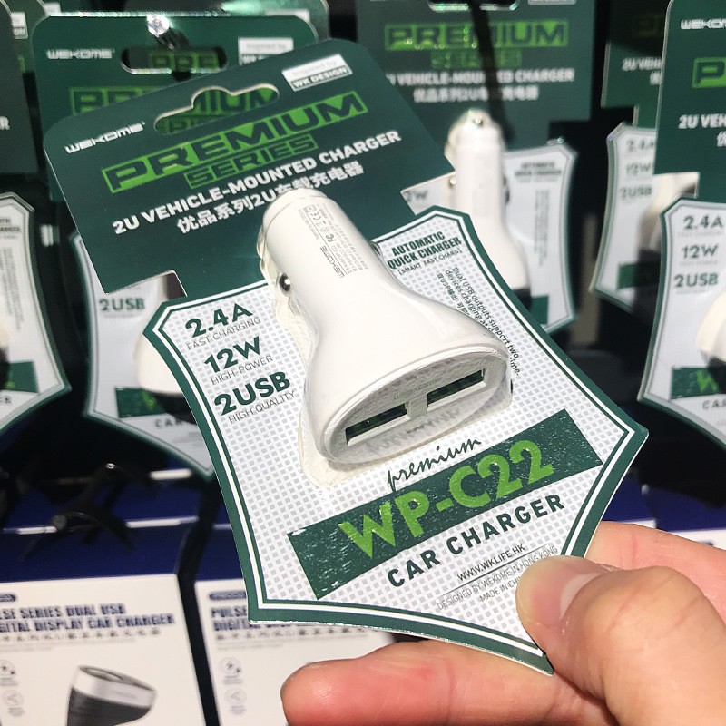 - Ngoài các sản phẩm phụ kiện dành cho các thiết bị di động, sạc xe hơi cũng là một trong những sản phẩm chủ lực trong thời gian gần đây. Bên cạnh những dòng sạc cao cấp bằng kim loại thì các sản phẩm giá rẻ như sạc xe hơi C22 cũng là một trong những sản phẩm được cung cấp chính hãng bởi WK