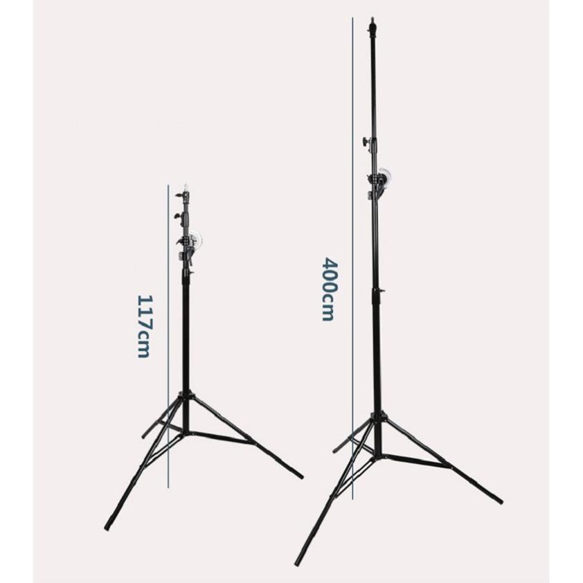 Bộ tay treo đèn 4m được làm từ hợp kim nhôm cao cấp, chiều dài thẳng đứng là 4m, chiều dài thanh ngang là 2.15m. Đầu ốc 1/4 là 3/8 có thể gắn mic thu âm hoặc gắn các loại đèn quay phim chụp ảnh.THÔNG SỐ KỸ THUẬT:
