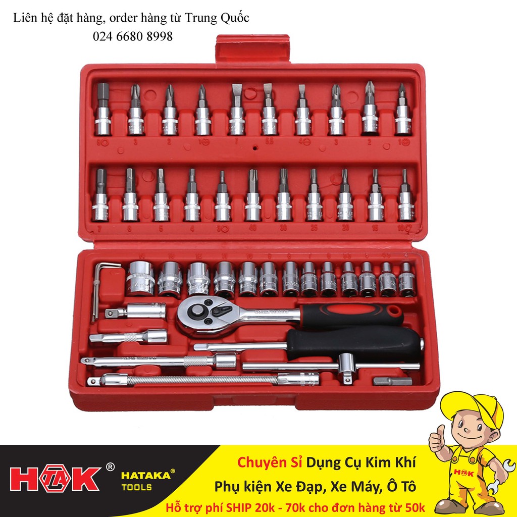 Nhà cửa & Đời sống > Dụng cụ & Thiết bị tiện ích > Dụng cụ > Hộp dụng cụ cầm tay || Bộ tay khẩu mở bu lông, ốc vít 46 chi tiếtCòn hàng