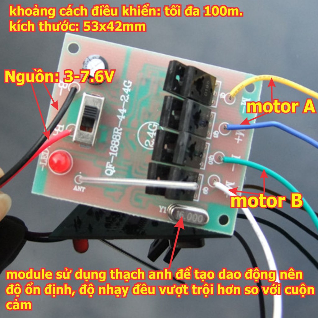 Giới thiệu bộ tay phát và mạch thu chế tạo xe, tàu... điều khiển từ xa 2 động cơ (5A) 24Ghz, màu cam/đen kde4963