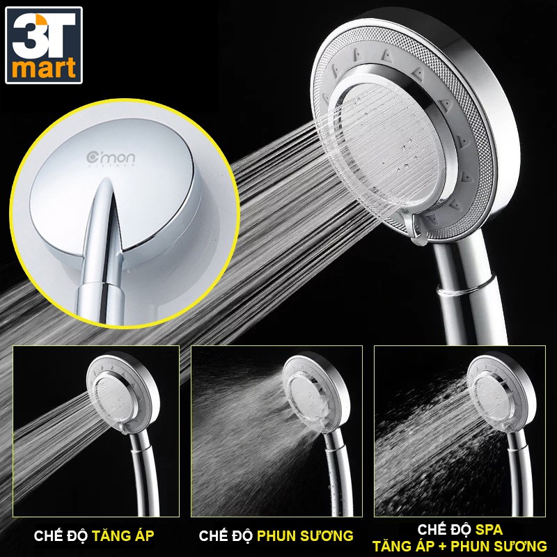 Bộ vòi sen tăng áp 3 chế độ nước tắm nóng lạnh được C'MON TS-03 + dây sen (bạc)