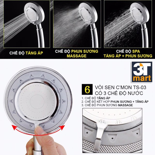 Bộ tay sen siêu tăng áp với 3 chế độ nước mạ Crom sáng bóng tiết kiệm nước tối đa đủ bộ Tay sen+ dây+gác cài - QM024