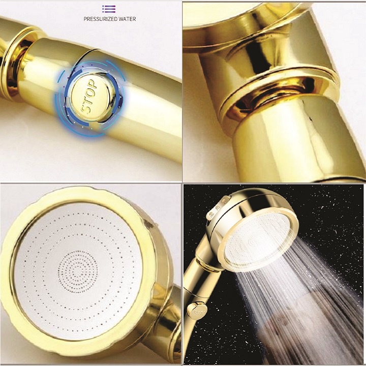 Bộ tay sen, vòi hoa sen tăng áp cao cấp mạ vàng xoay 360 độ đủ bộ Tay sen+Dây+Gác cài - QM045