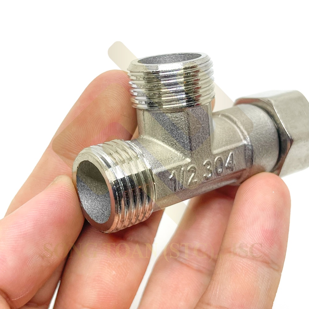 - Đầu nối tê cầu ren trong ren ngoài để kết nối hai ống ren với cùng đường kính hoặc đường kính khác nhau.
