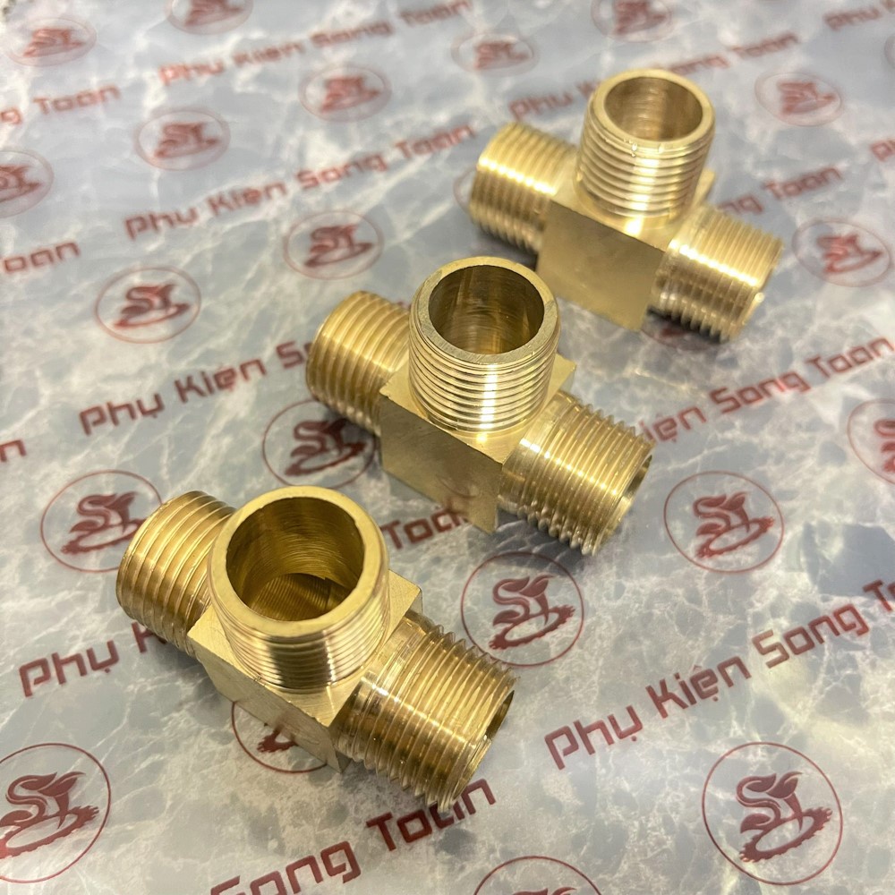 [TÊ NỐI REN] Tê chia ba đầu ren ngoài bước ren BSP hệ G dân dụng - Đồng phay nguyên khối (brass pipe fitting tee)