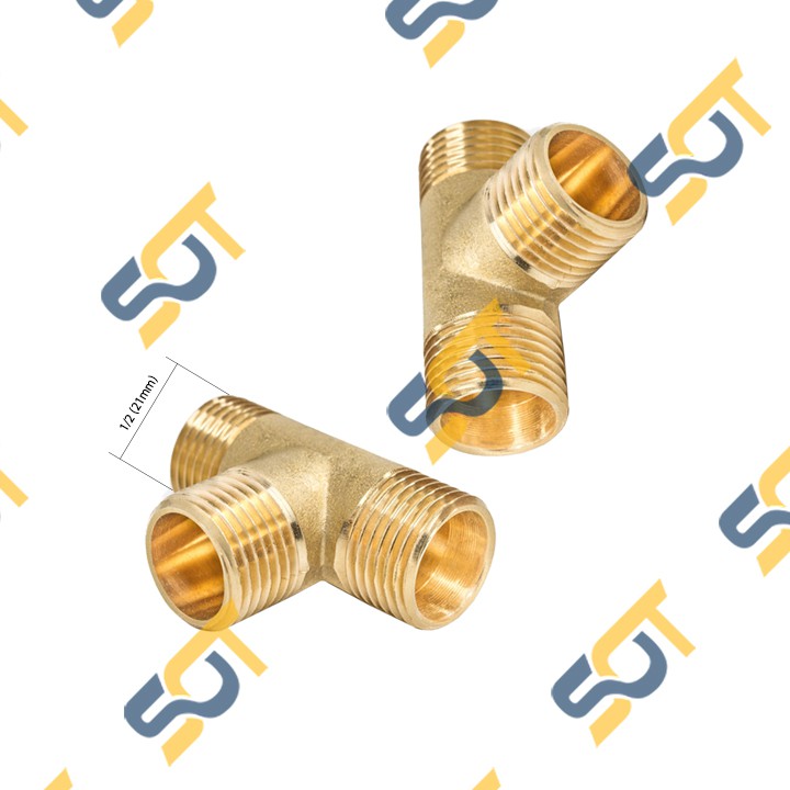 - Khớp nối ren Tê ba đầu ren ngoài 21 đồng thau dùng để kết nối hệ thống ren thông dụng