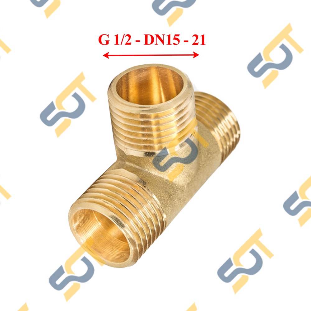 [TÊ NỐI REN] Tee G 1/2 (21) DN15 ba đầu chia ren ngoài kết nối T ren BSP hệ G - Bằng đồng đúc khuôn dập nóng