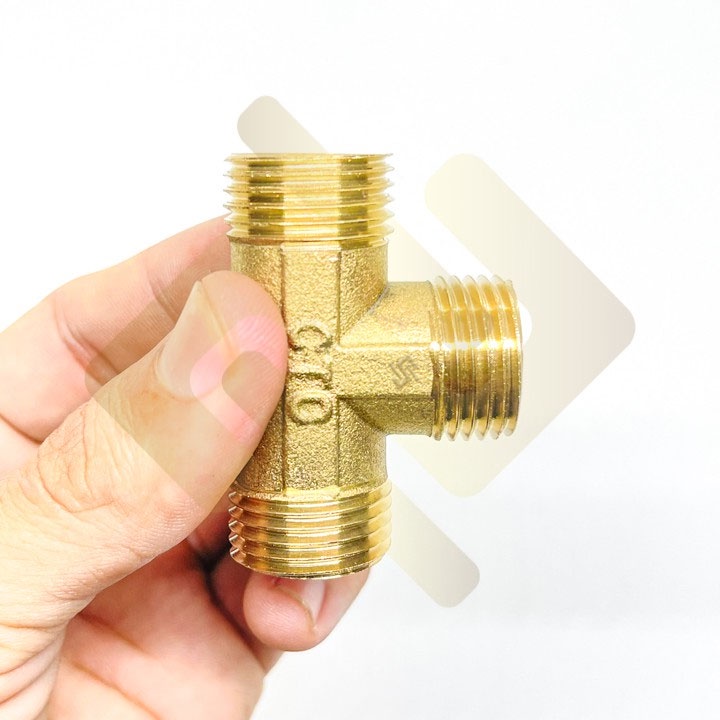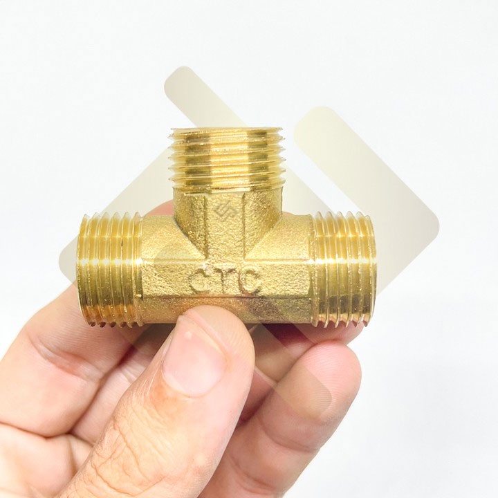 [TÊ NỐI REN] Tee G 1/2 (21) DN15 ba đầu chia ren ngoài kết nối T ren BSP hệ G - Bằng đồng đúc khuôn dập nóng