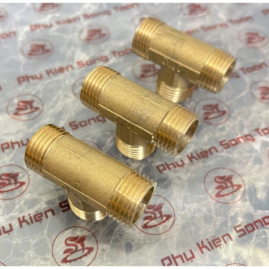 [TÊ NỐI REN] Tee G 1/2 (21) DN15 ba đầu chia ren ngoài kết nối T ren BSP hệ G - Bằng đồng đúc khuôn dập nóng