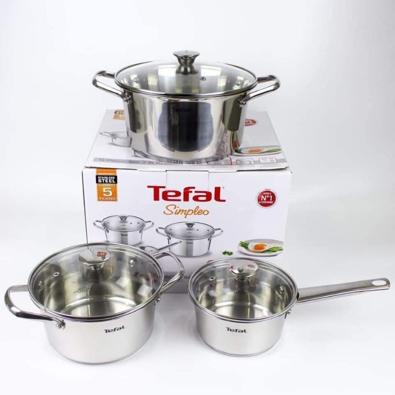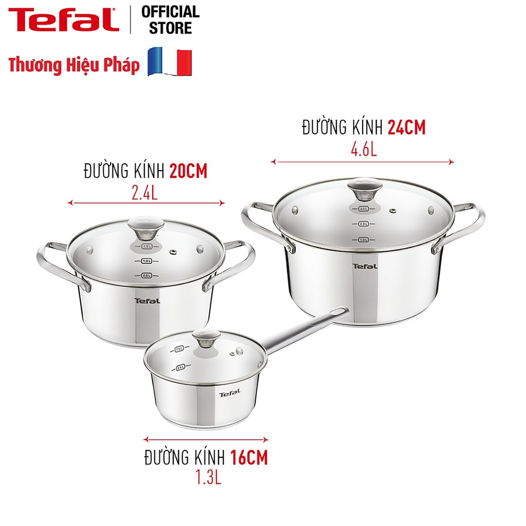 Nhà cửa & Đời sống > Dụng cụ nhà bếp > Nồi || Tefal- Bộ Inox Simpleo B907S644 đẹp đến nao lòng gồm quánh size 16cm, nồi size 20cm và 24cm phù hợp với mọi loại bếpCòn hàng