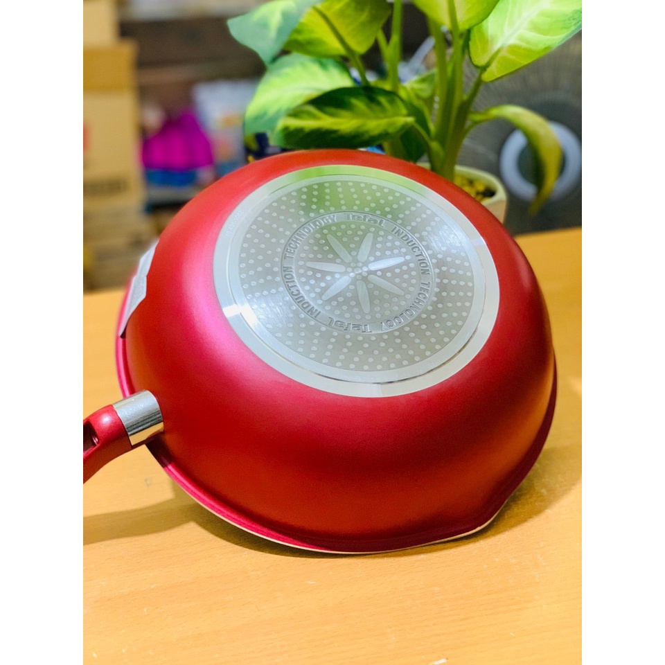 Chảo được thiết kế kiểu dáng và mầu đỏ theo phong cách Châu Âu rất sang trọng. Công nghệ bắt từ độc quyền tại Tefal giúp chiếc chảo đạt được công suất tối đa của bếp và giữ nhiệt tốt hơn với công nghệ TitaniumChảo Tefal So Chef với 3 lớp chống dính Titanium bền bỉ, cao cấp chống trầy xước, hoàn toàn không chứa PFOA, không tạo ra bất kỳ phản ứng hóa học nào khi tiếp xúc thực phẩm.