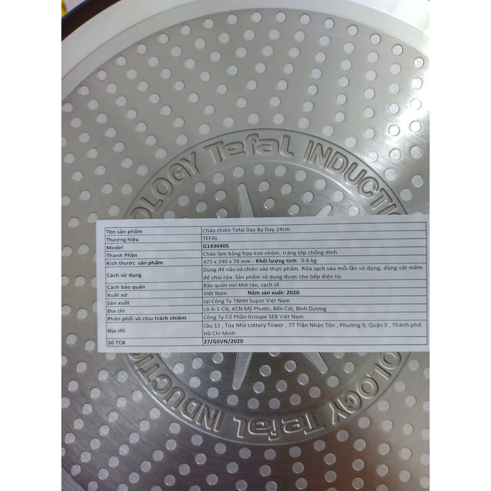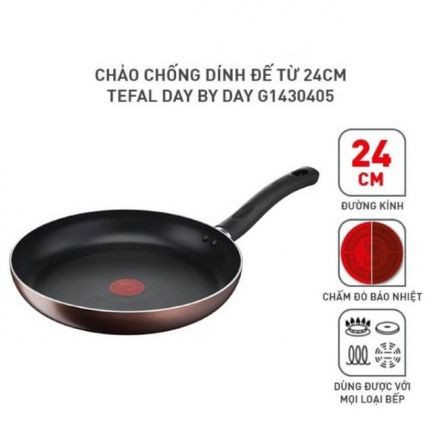 Tefal- dùng được bếp từ- G1430405- Chảo chống dính Day by Day size 24cm- thương hiệu Pháp, sản xuất tại Việt Nam