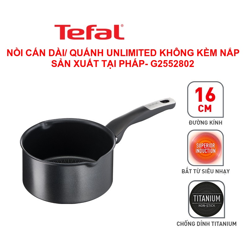 Giới thiệu Tefal- Nồi cán dài/ quánh không kèm nắp Unlimited G2552802 size 16cm, sản xuất tại Pháp- hàng chính hãng