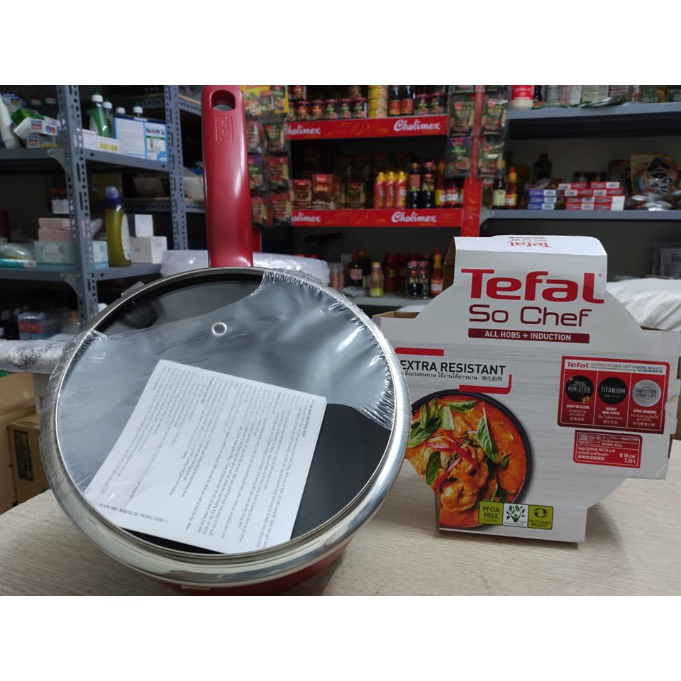 Quánh Tefal So Chef thiết kế từ Pháp được làm bằng hợp kim nhôm cao cấp với màu đỏ sang trọng bên trong là phủ lớp chống dính Titanium Reinforced an toàn cho khả năng chống dính hoàn hảo và độ bền vượt trội, thích hợp cho nhiều kiểu nấu nướng, sử dụng được trên bếp từ.Công nghệ độc đáo Thermo-spot của Tefal giúp nhận biết khi nào chảo đủ nóng để nấu thức ăn, đảm bảo sự hoàn hảo cho mỗi món ăn.