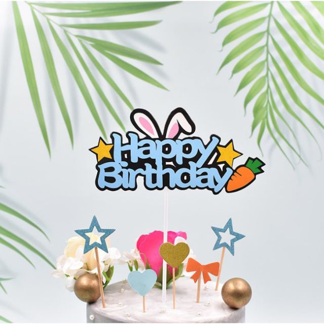 Nhà cửa & Đời sống > Trang trí nhà cửa > Khác || tem cắm Happy Birtday Thỏ cà rốt trang trí bánh, topper cakeCòn hàng