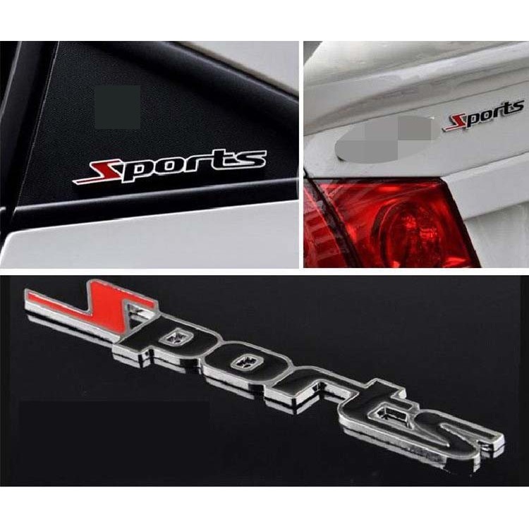 - Tem chữ Sports kim loại hay dùng để dán trang trí đuôi xe ô tô, sườn xe ô tô.