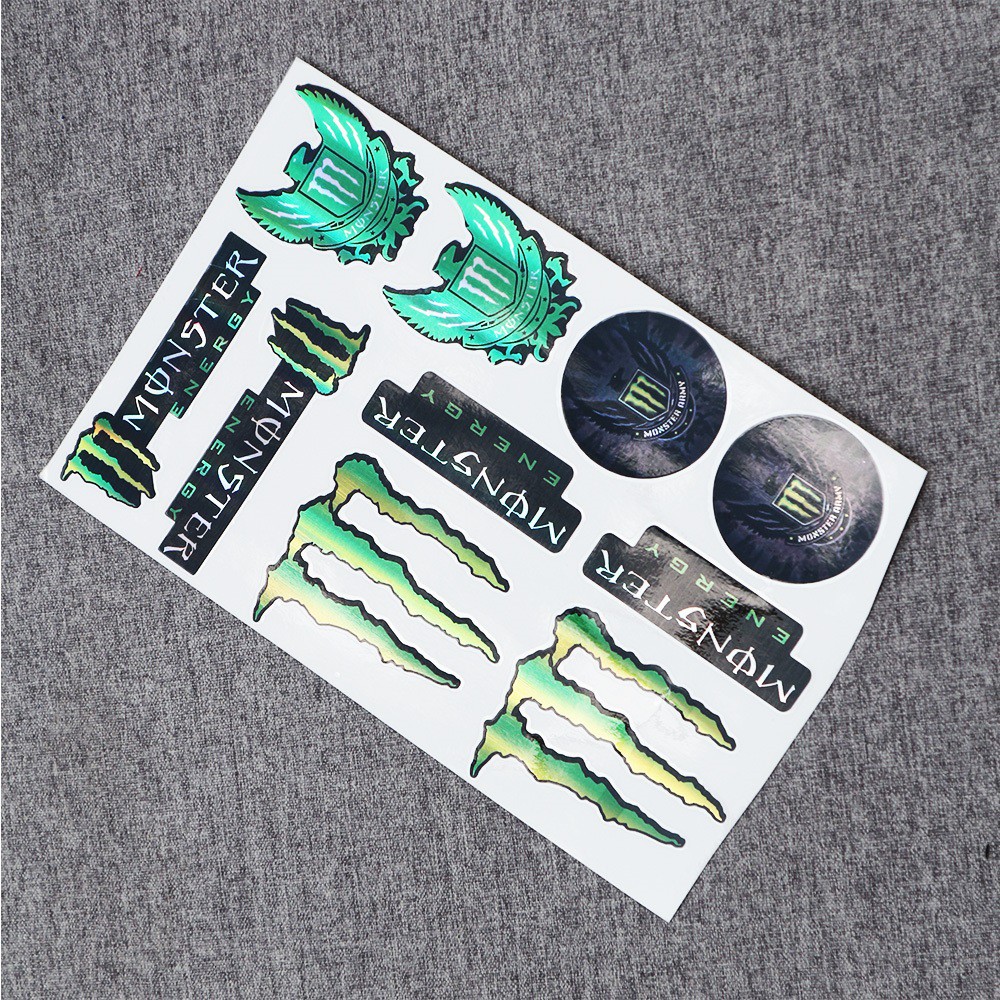 TEM CROM BÓNG TRANG TRÍ XE MẪU MONSTER NHIỀU STICKER LOGO CÁC THƯỞNG HIỆU SẮC NÉT