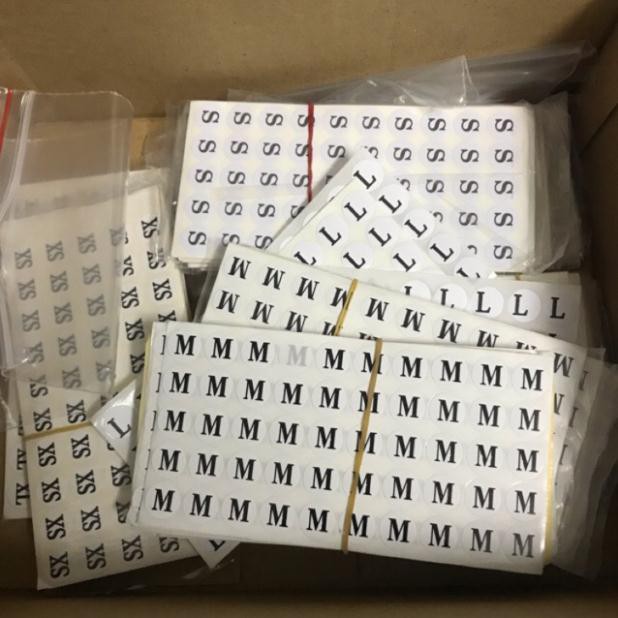 Decal size dán, size số dán mác quần áo dùng cho các Shop quần áo . giày dépTem được in bằng mực nước không bong chóc khi dán lên sản phẩm .