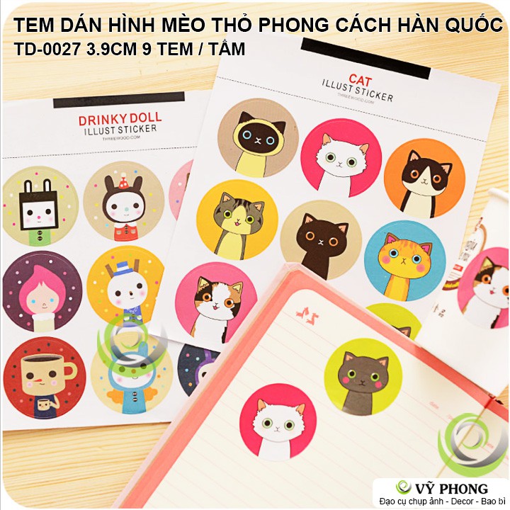 Nhà cửa & Đời sống > Trang trí nhà cửa > Khác || TEM DÁN STICKER HOẠT HÌNH HÀN QUỐC CAT AND DRINKY DOLL NHÃN DÁN TRANG TRÍ BAO BÌ TÚI HỘP TD-0027Còn hàng