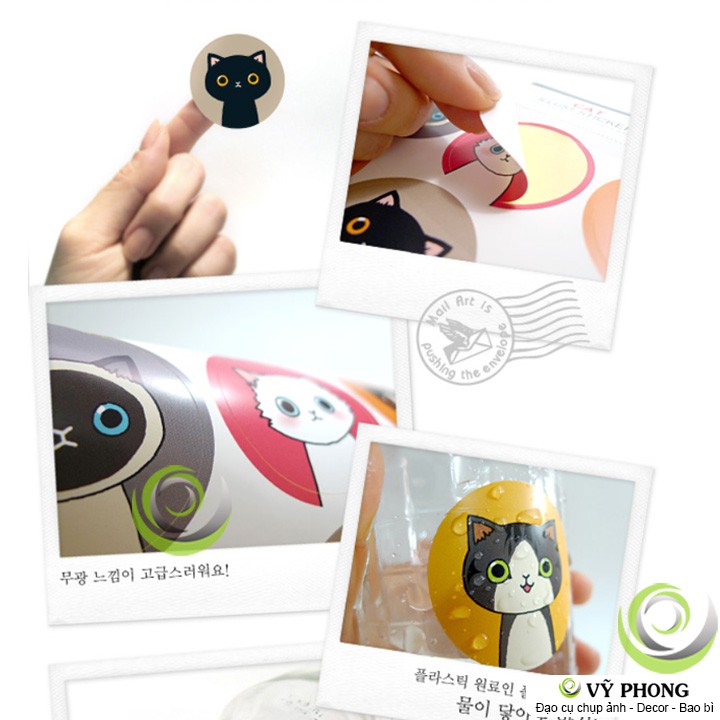 TEM DÁN STICKER HOẠT HÌNH HÀN QUỐC CAT AND DRINKY DOLL NHÃN DÁN TRANG TRÍ BAO BÌ TÚI HỘP TD-0027