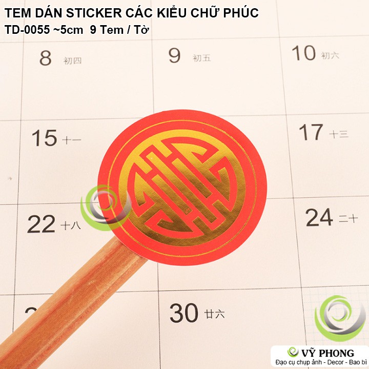 TEM DÁN TẾT CHỮ PHÚC TRÒN ĐỎ NĂM MỚI STICKER NHÃN DÁN ĐÁM CƯỚI TRANG TRÍ NIÊM PHONG BAO BÌ HỘP QUÀ BÁNH KẸO TD-0055