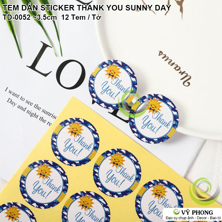 Tên sản phẩm : TEM DÁN STICKER NHÃN DÁN THANK YOU SUNNY DAY TRANG TRÍ NIÊM PHONG BAO BÌ HỘP QUÀ BÁNH KẸO TD-0052Mã sản phẩm : TD-0052
