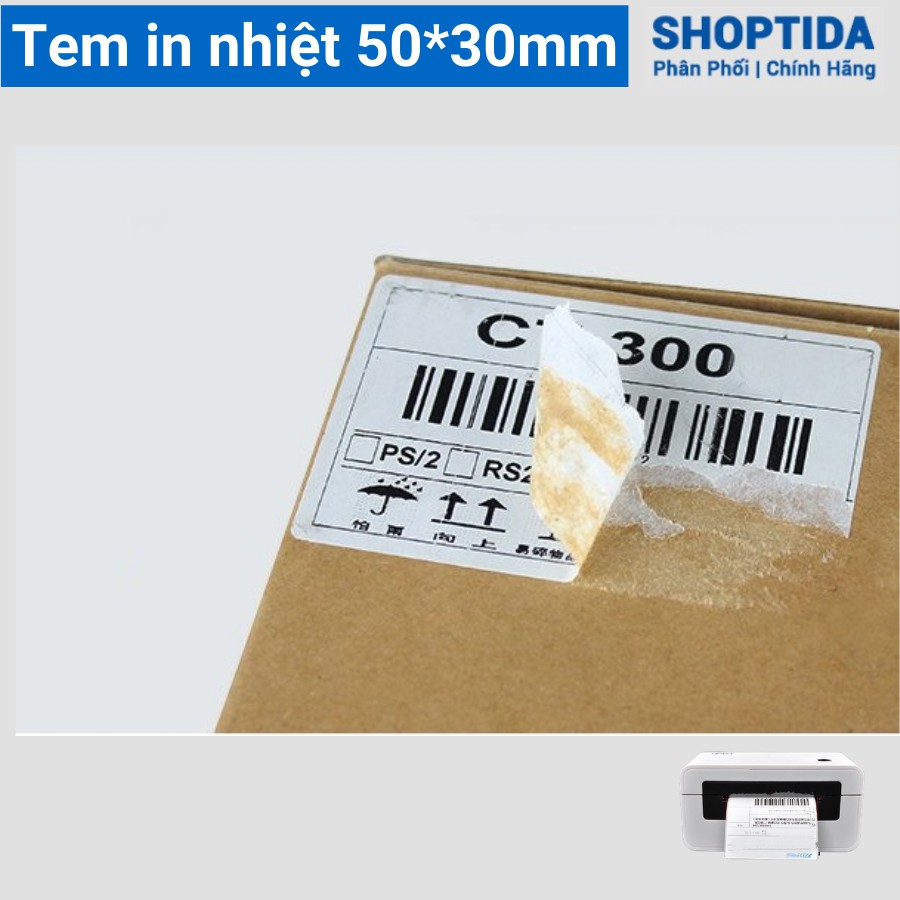 Máy tính & Laptop > Máy In & Máy Scan > Khác || Tem in nhiệt Shoptida loại 1400 tem 50*30mm in minicode, qr code, lời cảm ơn, sử dụng cho máy in nhiệt Shoptida SP46Còn hàng