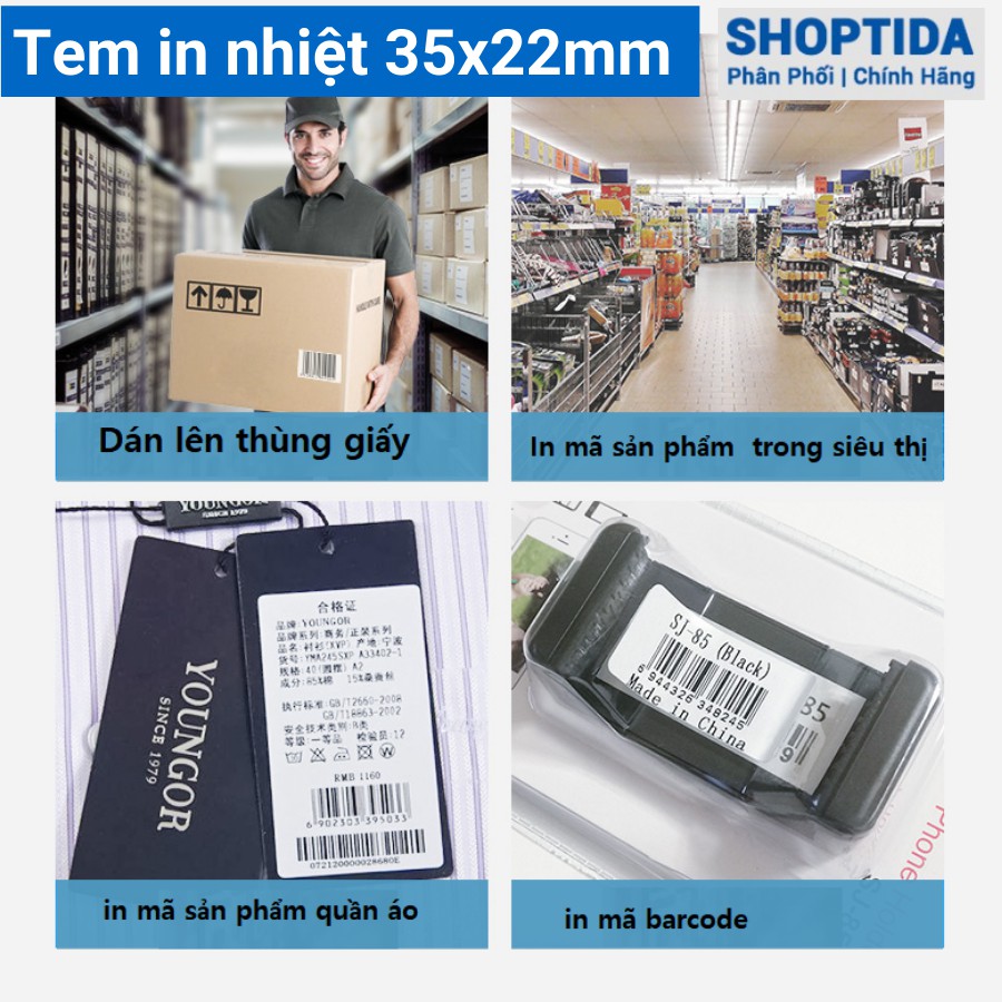Máy tính & Laptop > Máy In & Máy Scan > Khác || Tem in nhiệt Shoptida loại 2400 tem 35*22mm in minicode, barcode, 2 tem 1 hàng, sử dụng cho máy in nhiệt Shoptida SP4Còn hàng