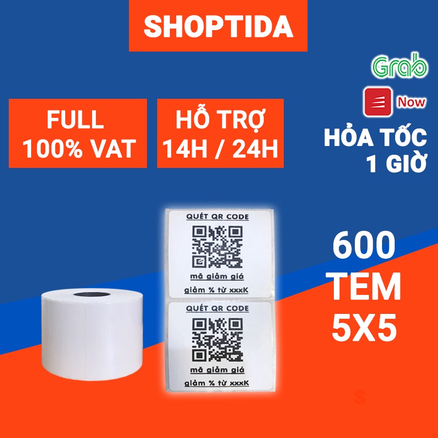 Tem in nhiệt Shoptida loại 600 tem 50*50mm in minicode, qr code, lời cảm ơn, sử dụng cho máy in nhiệt Shoptida SP46