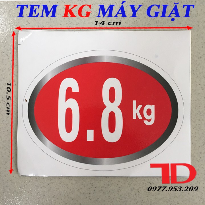 Tem KG Dán Máy Giặt Loại 6.8KG