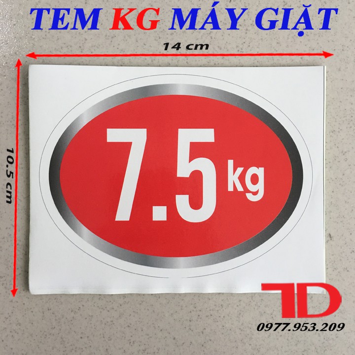 Tem KG Dán Máy Giặt Loại 7.5KG