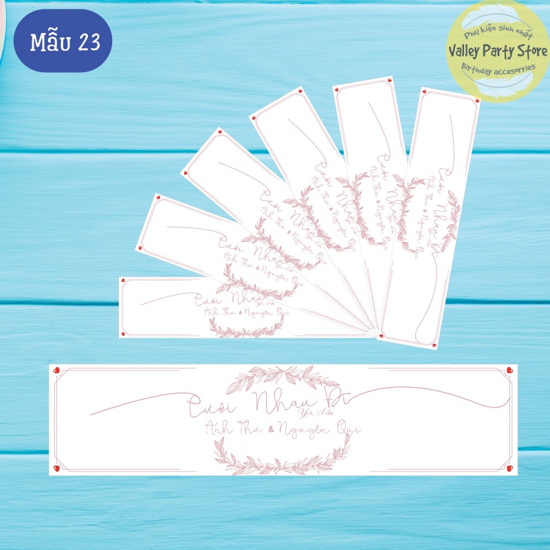 Nhà cửa & Đời sống > Trang trí nhà cửa > Khác || Tem quấn, nhãn dán chai nước đám cưới thiết kế theo yêu cầuCòn hàng