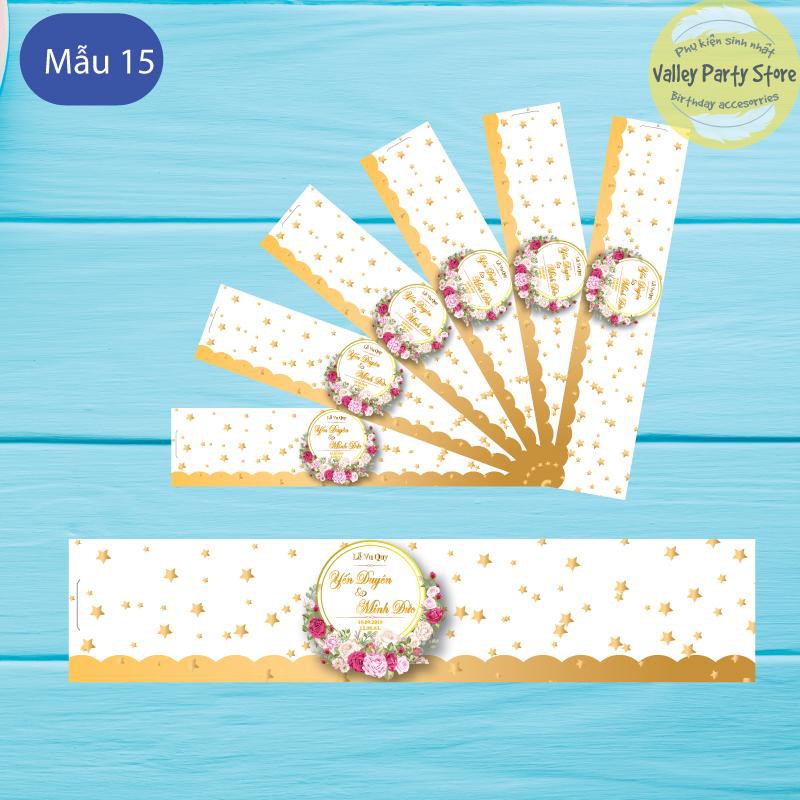Tem quấn, nhãn dán chai nước đám cưới thiết kế theo yêu cầu