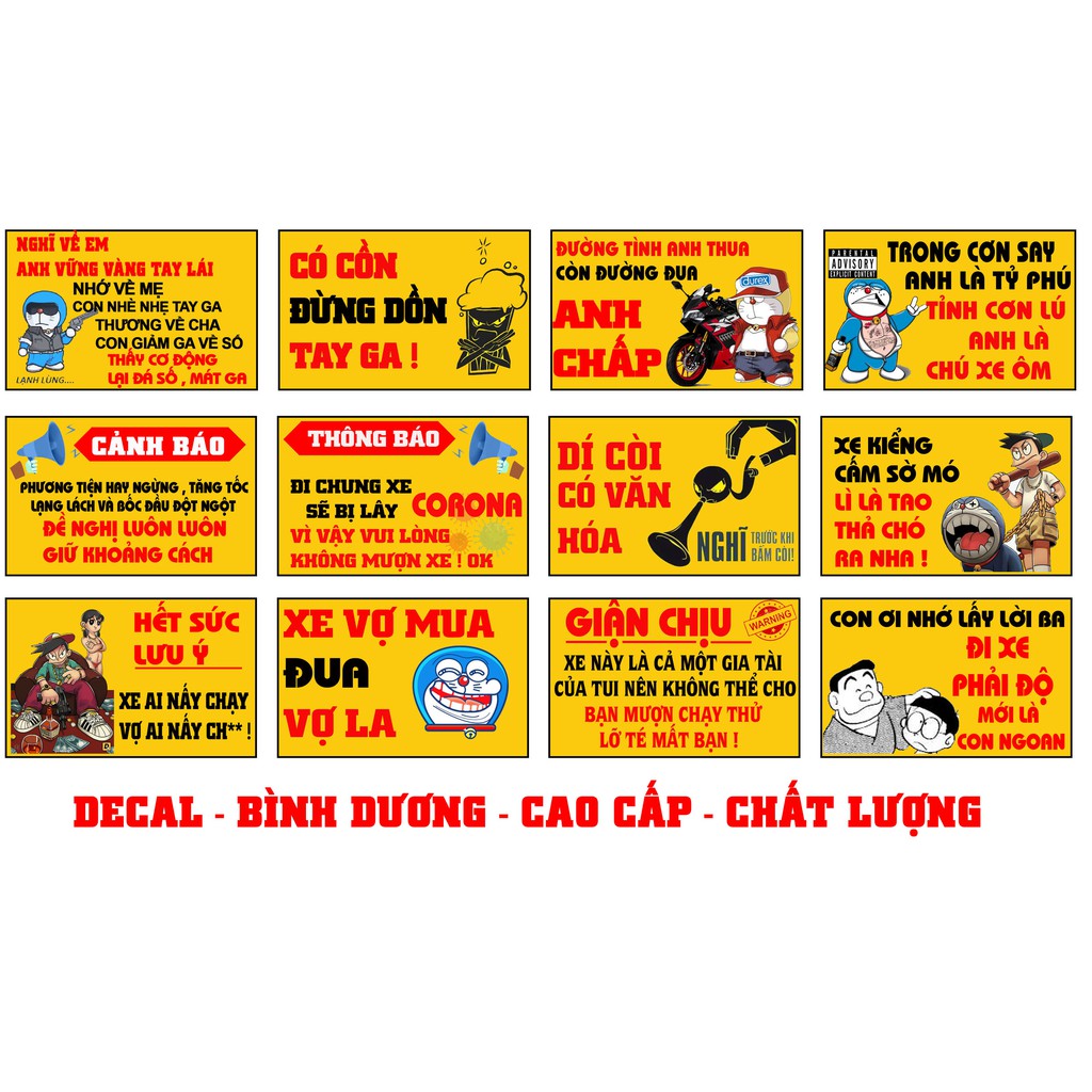 Giới thiệu TEM TẤM CẢNH BÁO HÀI HƯỚC 24 TEM TRỌN BỘ DECAL CAO CẤP