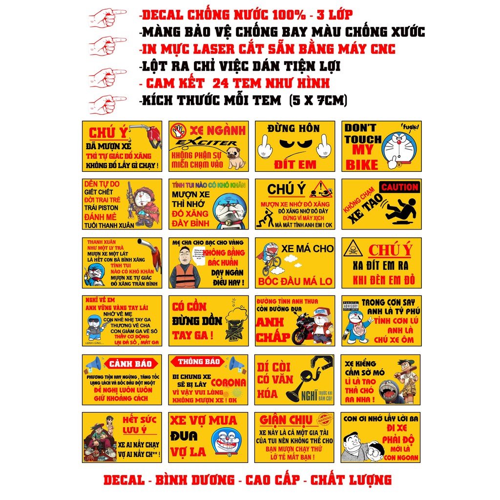 - SẢN PHẨM TRỌN BỘ TEM DÁN HÀI HƯỚC CHO BIKER - Ô TÔT XE MÁY CAO CẤP- KÍCH THƯỚC TEM NHỎ 5X7CM GỒM 24 TEM