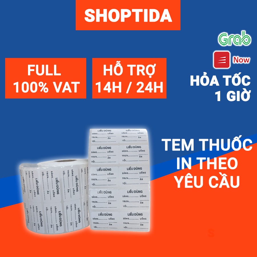Giới thiệu Tem thuốc nhãn thuốc in sẵn liều dùng uống thuốc dược phẩm cho y dược Shoptida