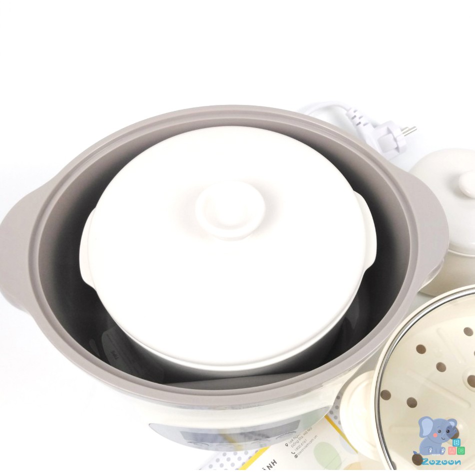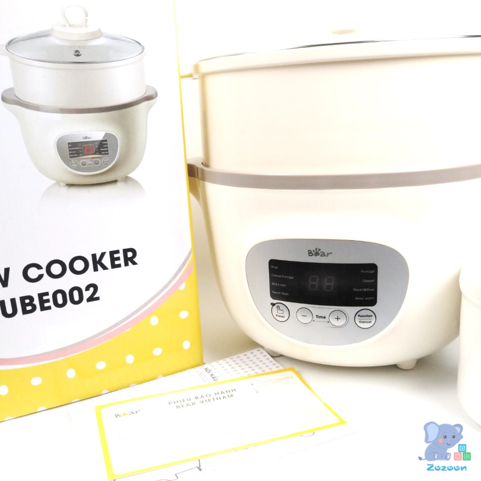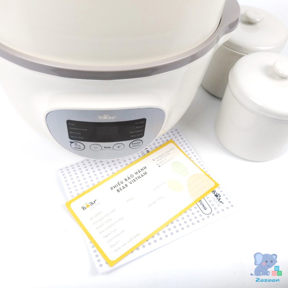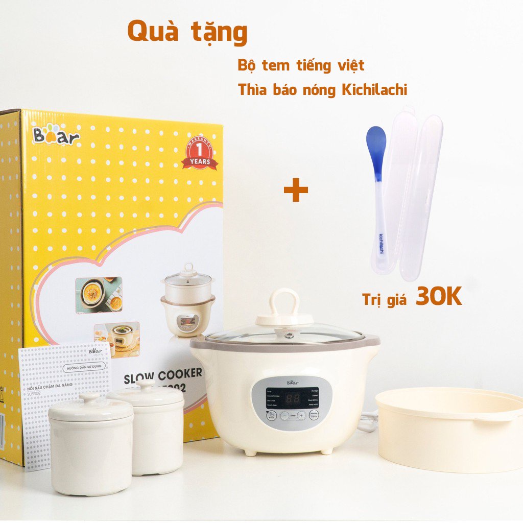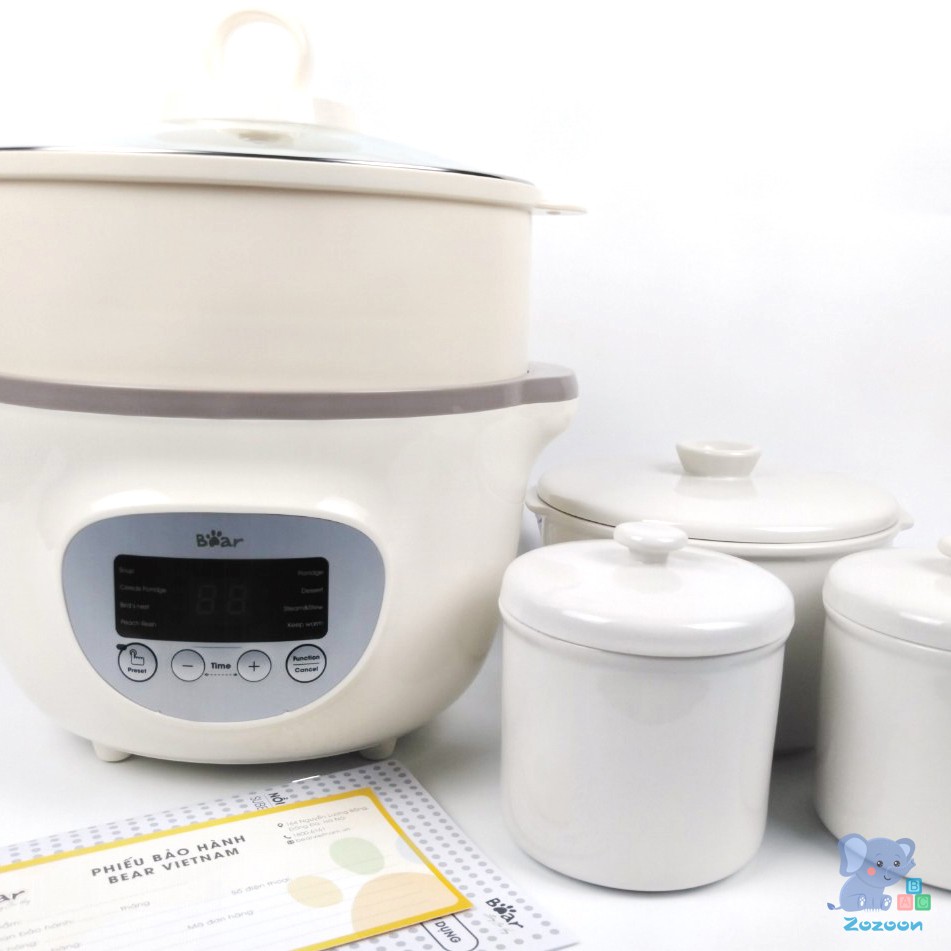 Nồi nấu cháo chậm Bear, nồi nấu cháo ninh hầm cách thủy Bear 1,6 lít bao gồm 3 thố sứ và 1 lồng hấp [TEM TIẾNG VIỆT]